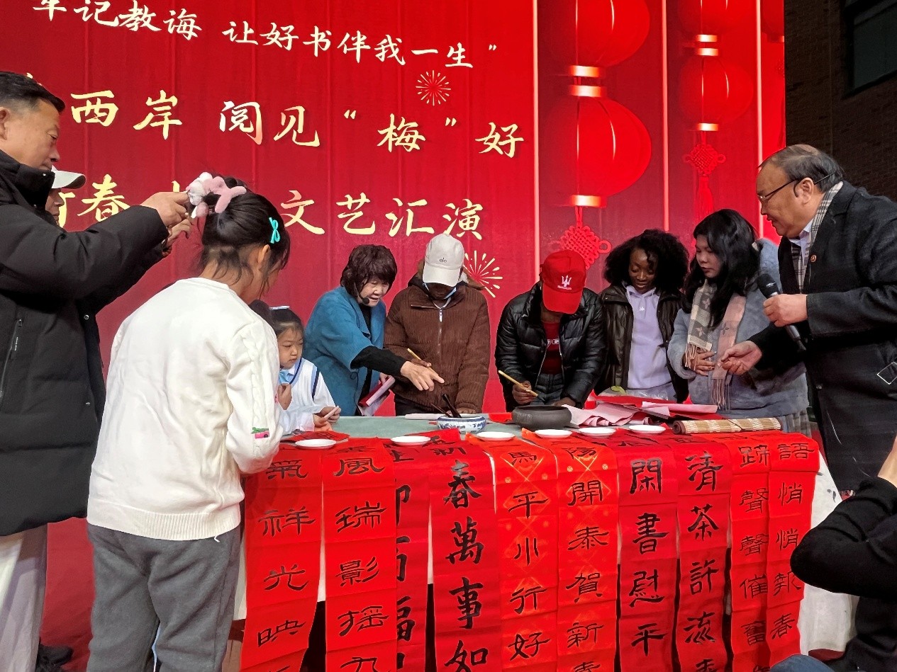 马年春节的序幕在书香中拉开。1月17日,留津留学生代表受邀走进河西区新梅江文体中心图书馆,参加了“四季西岸阅见‘梅’好:新春书香文艺汇演”活动。活动现场,留学生们与天津本地市民欢聚一堂,共同欣赏了精彩纷呈的文艺节目,在书香与年味中展现跨文化交流活力,用武术与笔墨传递新春祝福。